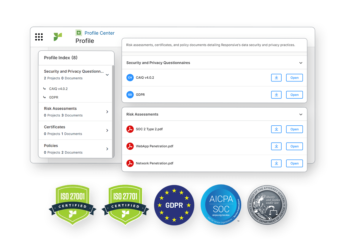 With information security breaches all too common, teams must take measures to reduce risk. Responsive maintains industry best practices and adheres to global standards to help our customers meet their own compliance standards and security requirements.